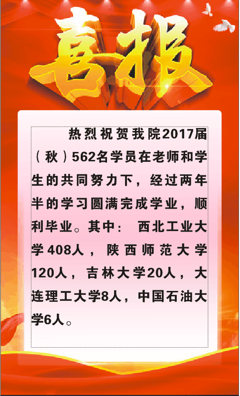 西北工業(yè)大學(xué)2017屆(秋)畢業(yè)生喜報(bào)
